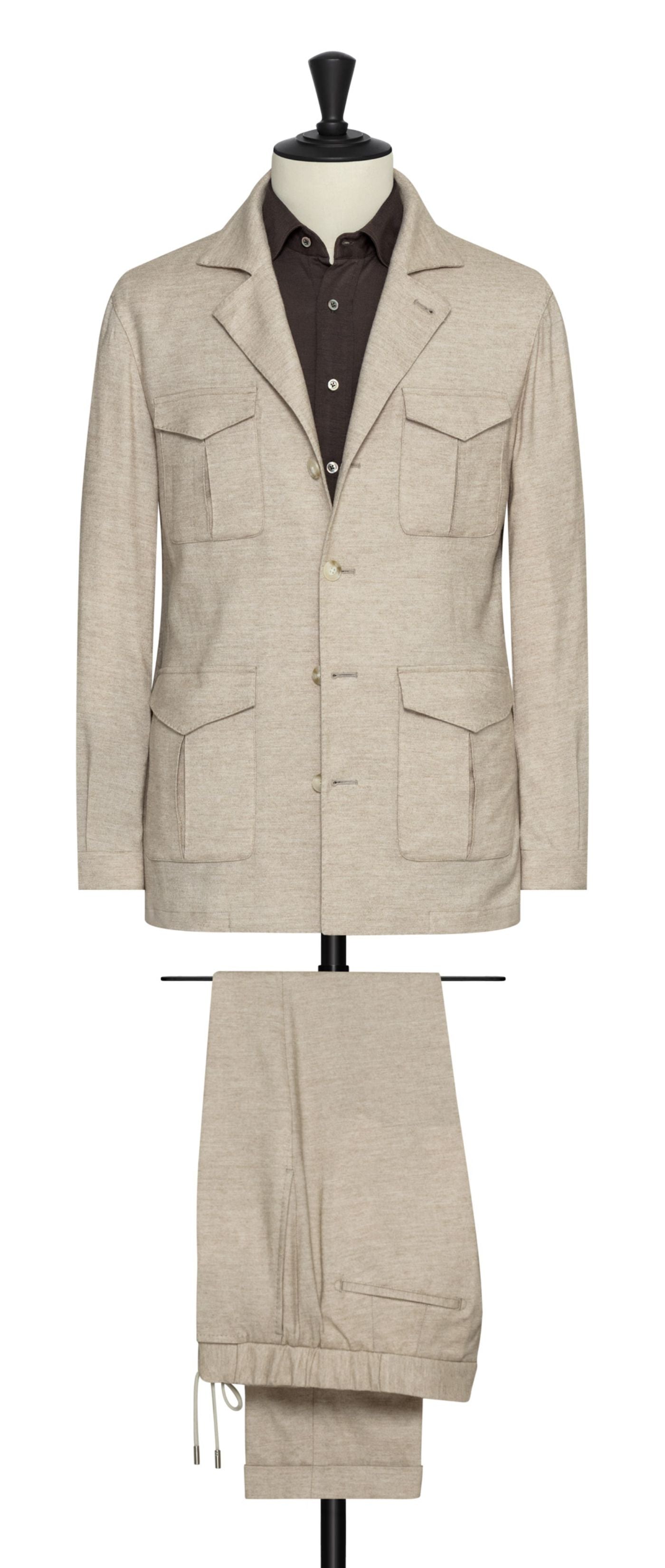 Carlo Barbera Oatmeal Wool, Lyocell & Cashmere Soft Stretch Twill