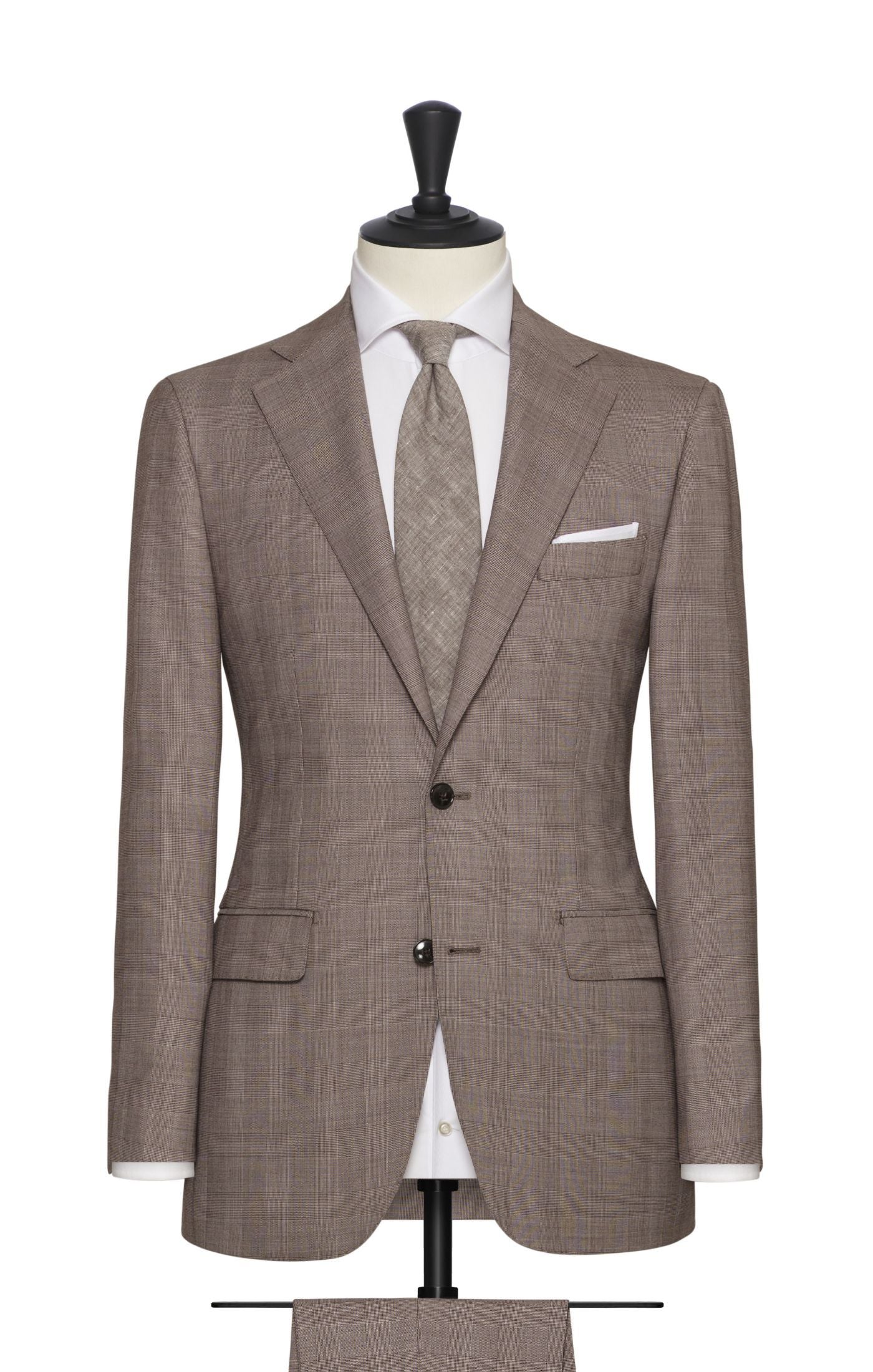 Barberis Canonico Mid Brown Mélange S130 Merino Wool Doppio Ritorto with Fine Glencheck