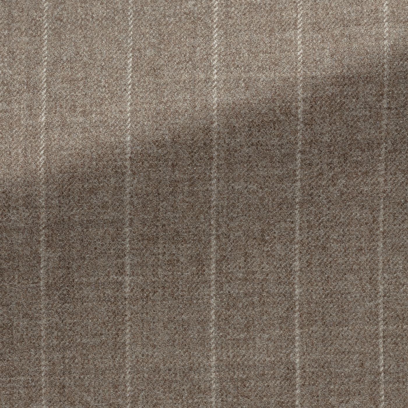 Loro Piana PECORA NERA Light Mocha Merino Wool Twill with Light Brown Stripes