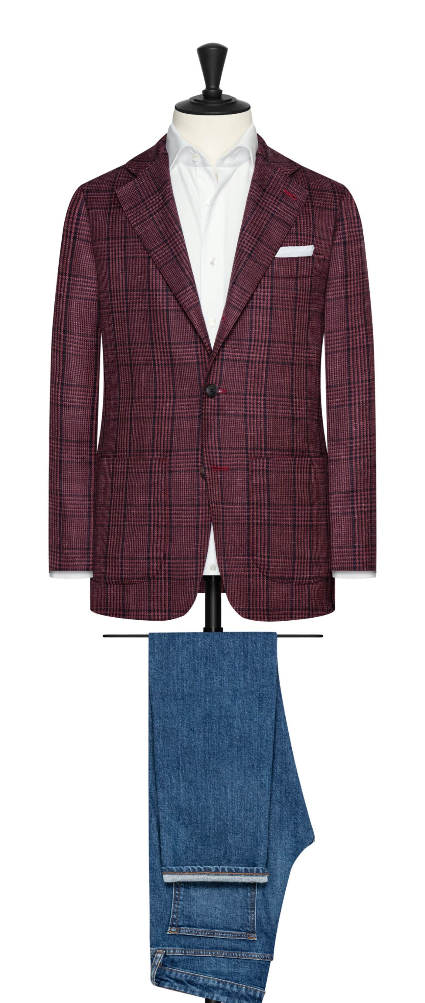 Drago Burgundy Wool, Silk & Linen Glencheck with Black Overcheck