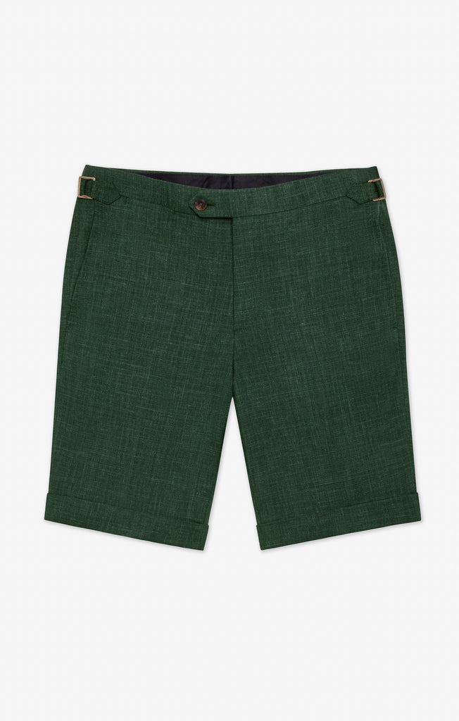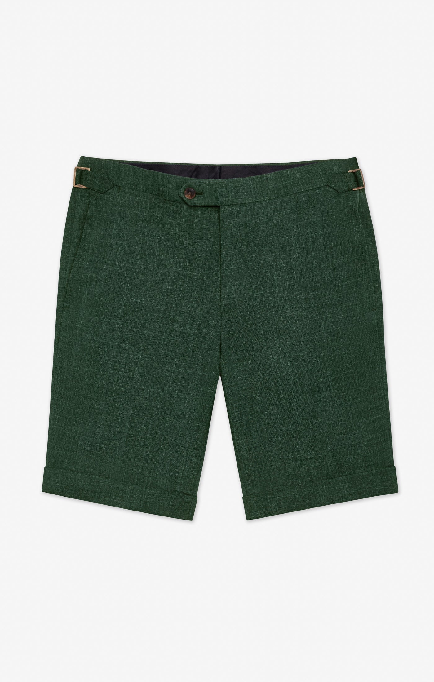Paulo Oliveira Dark Green Stretch Wool & Linen Blend Bermuda Shorts
