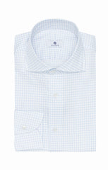 Albini Light Blue Check Twill 365 Easy Care Fine Cotton