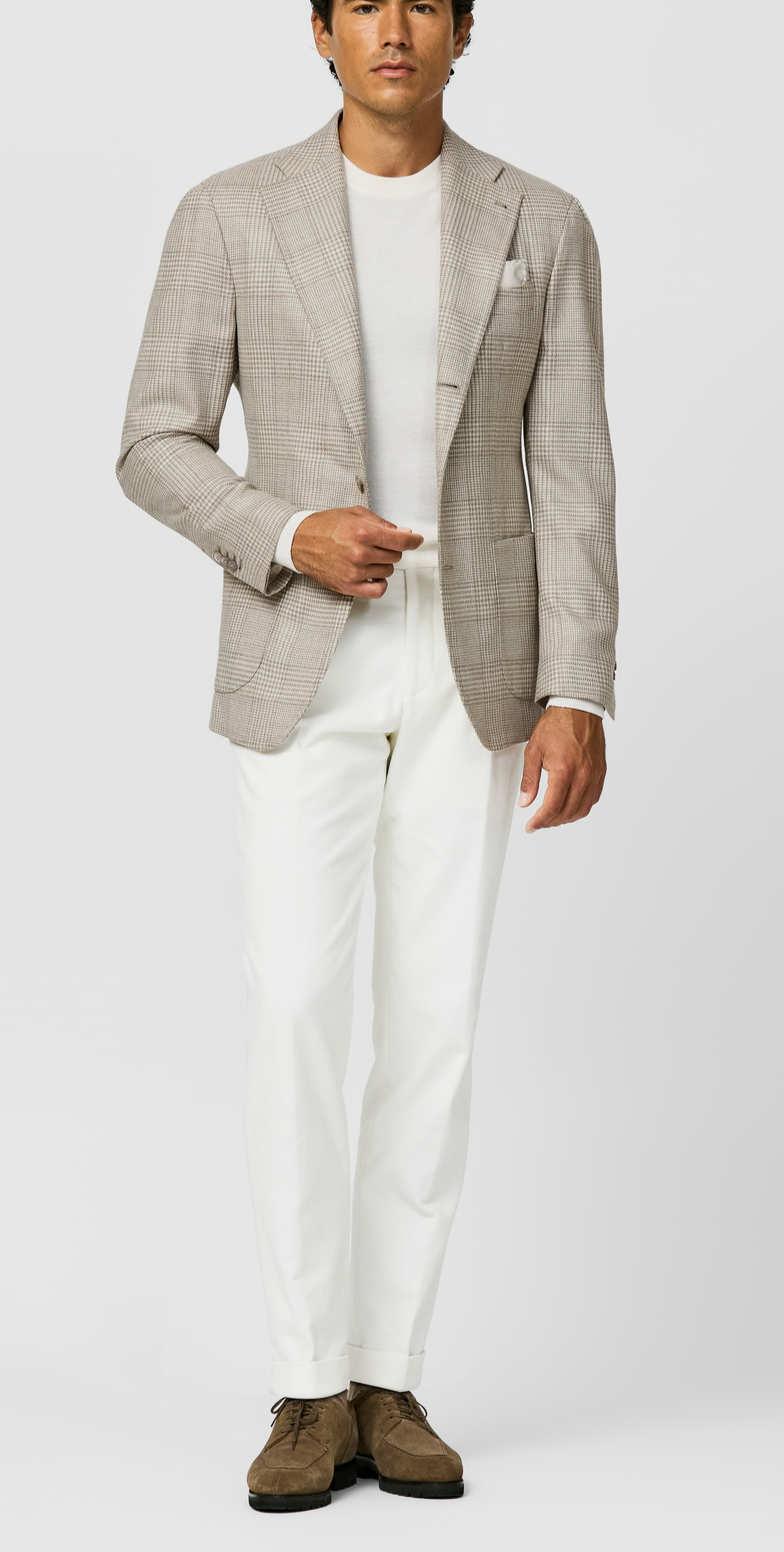 Loro Piana PECORA NERA Ivory & Taupe S120 Merino Wool Glencheck