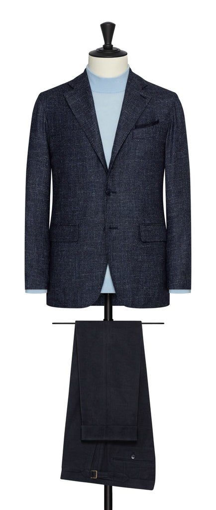Marlane Navy Blue Jaspé Wool, Cotton & Linen Twill
