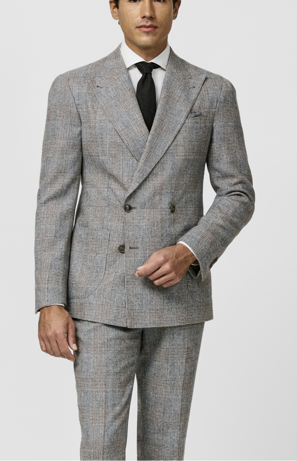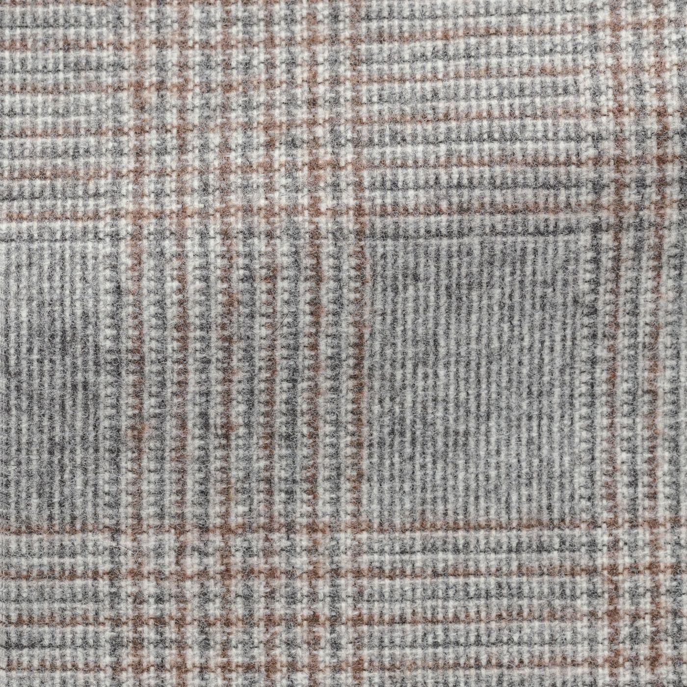 Ferla Light Grey Melange Merino Wool & Baby Alpaca Blend with Mid Grey & Cinnamon Glencheck