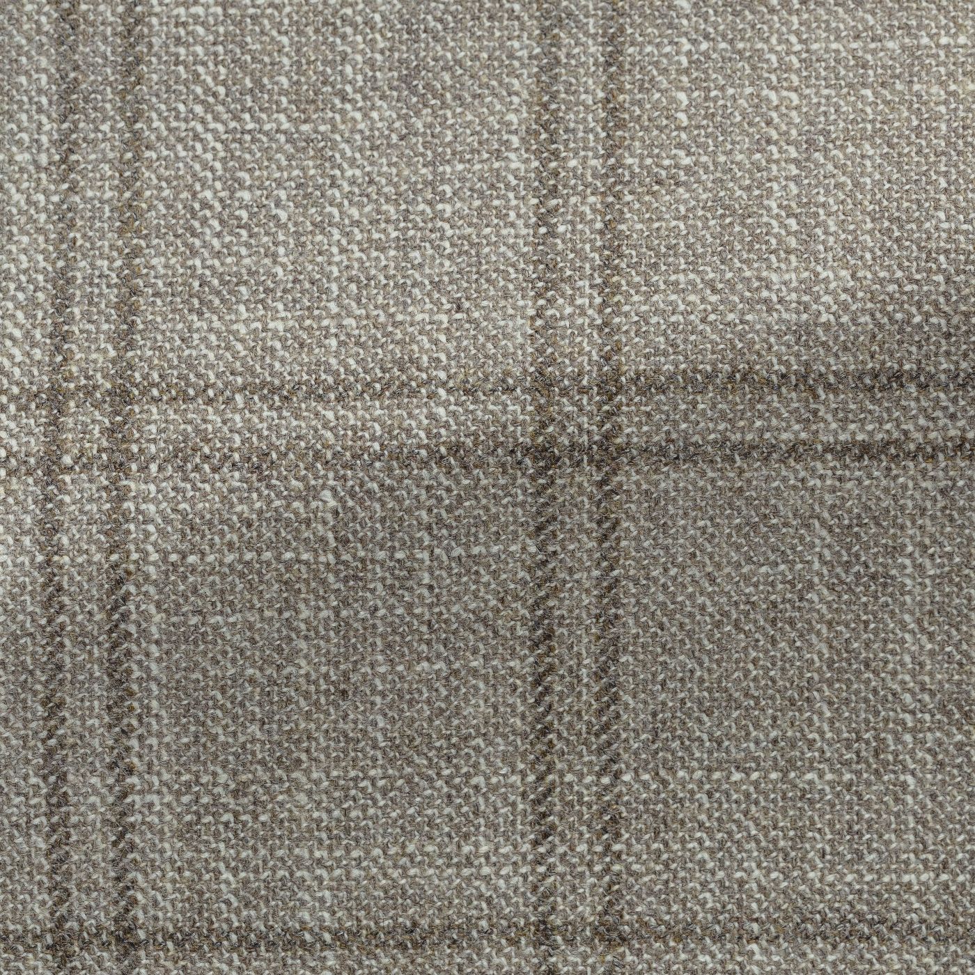Loro Piana SILK AIR Oatmeal Wool, Silk & Cashmere Sharkskin with Taupe Double Windowpane