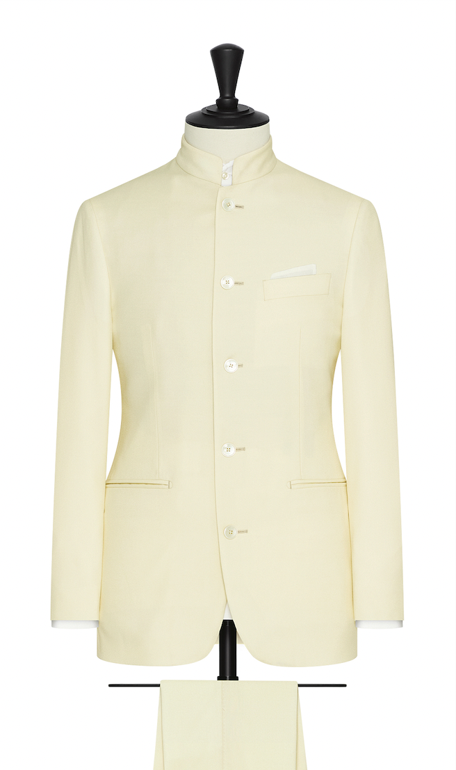 {"id":9812832649545,"title":"Zignone Ivory S120 Merino Wool Sablé","handle":"zignone-black-s100-merino-wool-with-subtle-micro-check-copy","description":"\u003cp\u003e\u003cspan\u003eFrom the traditional to more extravagant, our \u003c\/span\u003e\u003cspan\u003enew\u003c\/span\u003e\u003cspan\u003e ceremonial wear collection embodies elegant, understated styling. Select from fine Solaro tropicals, pure S120 wool sablé, micro-designs in S110 Merino wool or more celebratory textiles, elevated with mouliné yarns. Exclusive for summer nuptials, we welcome a range of sophisticated woollen faille weaves in a palette of pastels and neutral tones. Each with unique appeal and excellent drape.\u003c\/span\u003e\u003c\/p\u003e\n\u003cp\u003e\u003cspan\u003e\u003cmeta charset=\"utf-8\"\u003eFor upscale occasions that call for more traditional refinement, we include waistcoat fabrics in satin, pure wool, paisley jacquards and a satin-jacquard weave. Plus, trouser fabrics in classic stripes to match your morning coat ensembles. Our range of luxurious fabrics feature an array of fine details that are sure to set you apart.\u003c\/span\u003e\u003c\/p\u003e\n\u003cp\u003e\u003cspan\u003e\u003cmeta charset=\"utf-8\"\u003eThis timeless ivory fabric \u003cmeta charset=\"utf-8\"\u003ewoven in Italy by Zignone from luxurious S120 wool \u003cmeta charset=\"utf-8\"\u003esablé is soft, \u003cmeta charset=\"utf-8\"\u003esubtly textured, and crafted with a slight shine to reflect the sun resulting in a contemporary fresh hue. This fabric makes you a refined suit, a long or short morning coat or a \u003cmeta charset=\"utf-8\"\u003eNehru jacket ideal for never ending wedding parties and Summer events.\u003c\/span\u003e\u003c\/p\u003e\n\u003cp\u003eImpress with a modern look featuring our new Nehru jacket with stand-up mandarin collar and mix and match it with a pair of black tuxedo trousers in fine wool. Shown here with a white shirt and white silk pocket square.\u003c\/p\u003e","published_at":"2025-09-09T18:05:39+02:00","created_at":"2025-09-09T18:05:39+02:00","vendor":"POSSEN","type":"Jackets","tags":["BaseColour: Black","Bunch: 365 Wedding","Ceremonial","CM BB","Composition: S100 Merino Wool","DI: 5","Event","FilterBrand: Zignone","FilterColour: Black","FilterFabric: Wool","FilterPattern: check","Nehru Jackets","online","Pattern: Plain","Possen-Collection","Season: All Seasons","Tuxedo","Tuxedos","Wedding","Weight: 255gr"],"price":63900,"price_min":63900,"price_max":76900,"available":true,"price_varies":true,"compare_at_price":null,"compare_at_price_min":0,"compare_at_price_max":0,"compare_at_price_varies":false,"variants":[{"id":52915059523913,"title":"Traditional make","option1":"Traditional make","option2":null,"option3":null,"sku":null,"requires_shipping":true,"taxable":true,"featured_image":null,"available":true,"name":"Zignone Ivory S120 Merino Wool Sablé - Traditional make","public_title":"Traditional make","options":["Traditional make"],"price":63900,"weight":0,"compare_at_price":null,"inventory_quantity":50,"inventory_management":"shopify","inventory_policy":"deny","barcode":null,"requires_selling_plan":false,"selling_plan_allocations":[]},{"id":52915059556681,"title":"Unconstructed make","option1":"Unconstructed make","option2":null,"option3":null,"sku":null,"requires_shipping":true,"taxable":true,"featured_image":null,"available":true,"name":"Zignone Ivory S120 Merino Wool Sablé - Unconstructed make","public_title":"Unconstructed make","options":["Unconstructed make"],"price":63900,"weight":0,"compare_at_price":null,"inventory_quantity":50,"inventory_management":"shopify","inventory_policy":"deny","barcode":null,"requires_selling_plan":false,"selling_plan_allocations":[]},{"id":52915059589449,"title":"Full canvas make","option1":"Full canvas make","option2":null,"option3":null,"sku":null,"requires_shipping":true,"taxable":true,"featured_image":null,"available":true,"name":"Zignone Ivory S120 Merino Wool Sablé - Full canvas make","public_title":"Full canvas make","options":["Full canvas make"],"price":76900,"weight":0,"compare_at_price":null,"inventory_quantity":50,"inventory_management":"shopify","inventory_policy":"deny","barcode":null,"requires_selling_plan":false,"selling_plan_allocations":[]},{"id":52915059622217,"title":"Informal make","option1":"Informal make","option2":null,"option3":null,"sku":null,"requires_shipping":true,"taxable":true,"featured_image":null,"available":true,"name":"Zignone Ivory S120 Merino Wool Sablé - Informal make","public_title":"Informal make","options":["Informal make"],"price":63900,"weight":0,"compare_at_price":null,"inventory_quantity":50,"inventory_management":"shopify","inventory_policy":"deny","barcode":null,"requires_selling_plan":false,"selling_plan_allocations":[]}],"images":["\/\/www.possen.com\/cdn\/shop\/files\/EVE022_inspiration3_0e30ab7b-5bdc-46ea-b9d0-5b73e507c028.jpg?v=1757434152","\/\/www.possen.com\/cdn\/shop\/files\/EVE022_ivorys120woolsable_inspiration1.jpg?v=1757434152","\/\/www.possen.com\/cdn\/shop\/files\/EVE022_6bafdfba-d5f8-41e4-bbe5-cb983618fa8c.jpg?v=1757434140","\/\/www.possen.com\/cdn\/shop\/files\/EVE022_ivorys120woolsable_inspiration_cut.png?v=1757434148"],"featured_image":"\/\/www.possen.com\/cdn\/shop\/files\/EVE022_inspiration3_0e30ab7b-5bdc-46ea-b9d0-5b73e507c028.jpg?v=1757434152","options":["Make"],"media":[{"alt":null,"id":53290614292809,"position":1,"preview_image":{"aspect_ratio":0.807,"height":2726,"width":2200,"src":"\/\/www.possen.com\/cdn\/shop\/files\/EVE022_inspiration3_0e30ab7b-5bdc-46ea-b9d0-5b73e507c028.jpg?v=1757434152"},"aspect_ratio":0.807,"height":2726,"media_type":"image","src":"\/\/www.possen.com\/cdn\/shop\/files\/EVE022_inspiration3_0e30ab7b-5bdc-46ea-b9d0-5b73e507c028.jpg?v=1757434152","width":2200},{"alt":null,"id":53290611605833,"position":2,"preview_image":{"aspect_ratio":0.807,"height":2726,"width":2200,"src":"\/\/www.possen.com\/cdn\/shop\/files\/EVE022_ivorys120woolsable_inspiration1.jpg?v=175743415