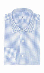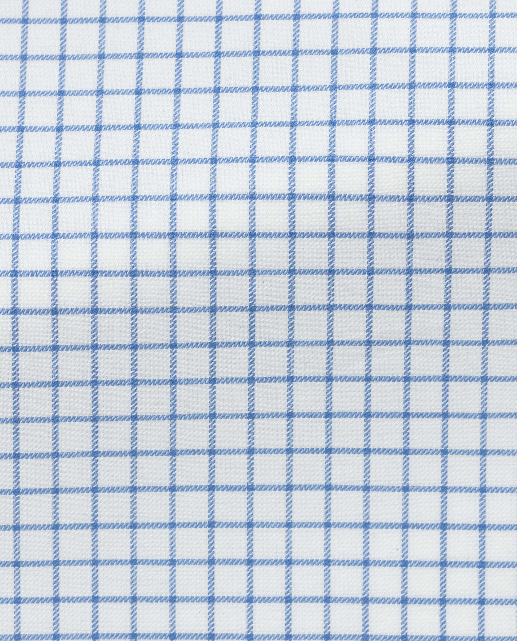 Canclini White Natural Stretch Organic Cotton Fine Twill Flannel with Light Blue Windowpane