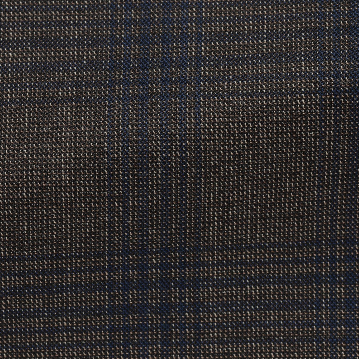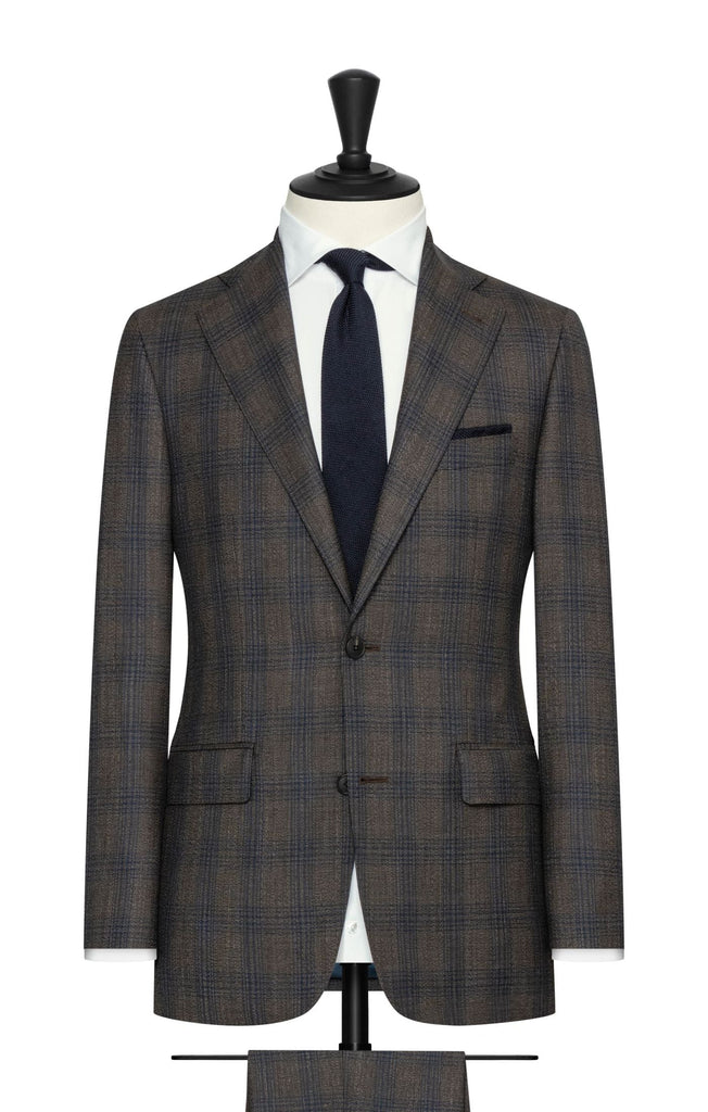 Angelico 365 Doppio Ritorto S130 Merino Wool Coffee Brown with Blue Check