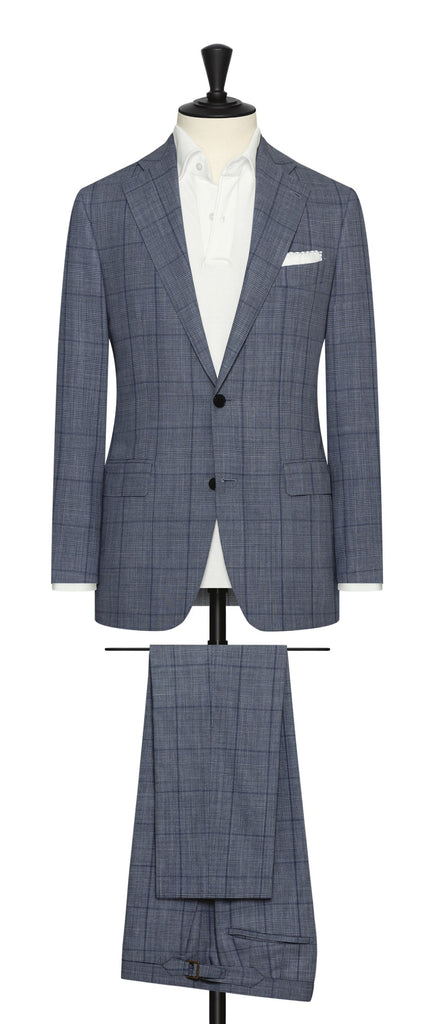 Loro Piana TRAVELLER Ice Blue High Twisted Wool Tropical with Dark Blue Check