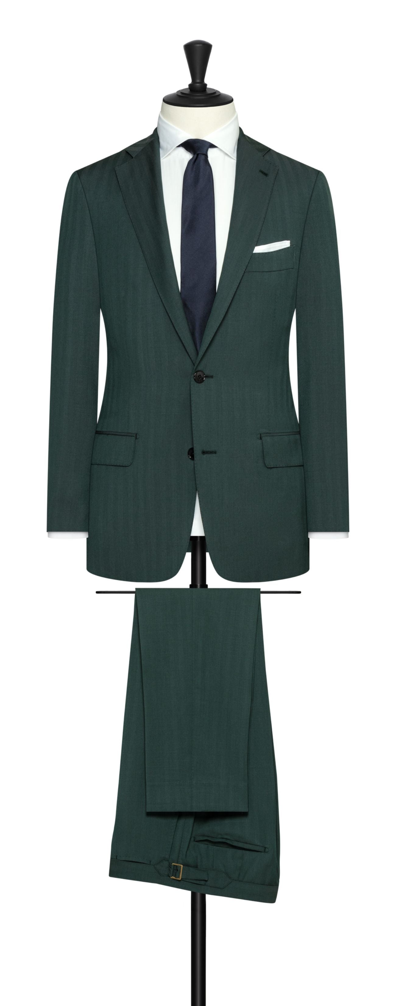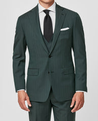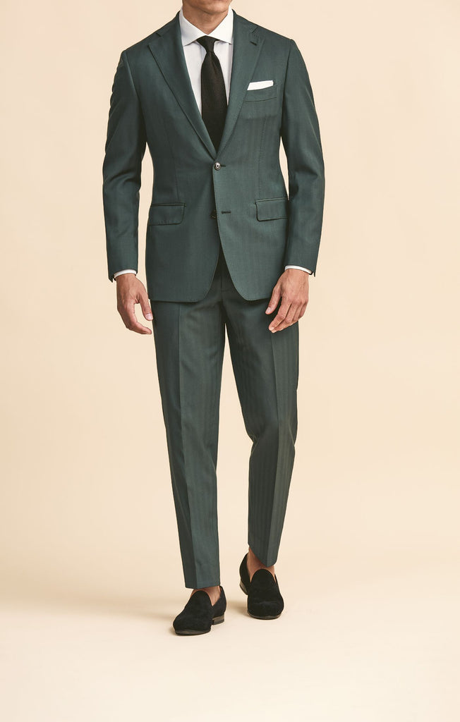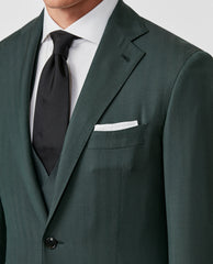 Drago Dark Green Bi Stretch Tropical S130 Wool Solaro Herringbone