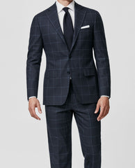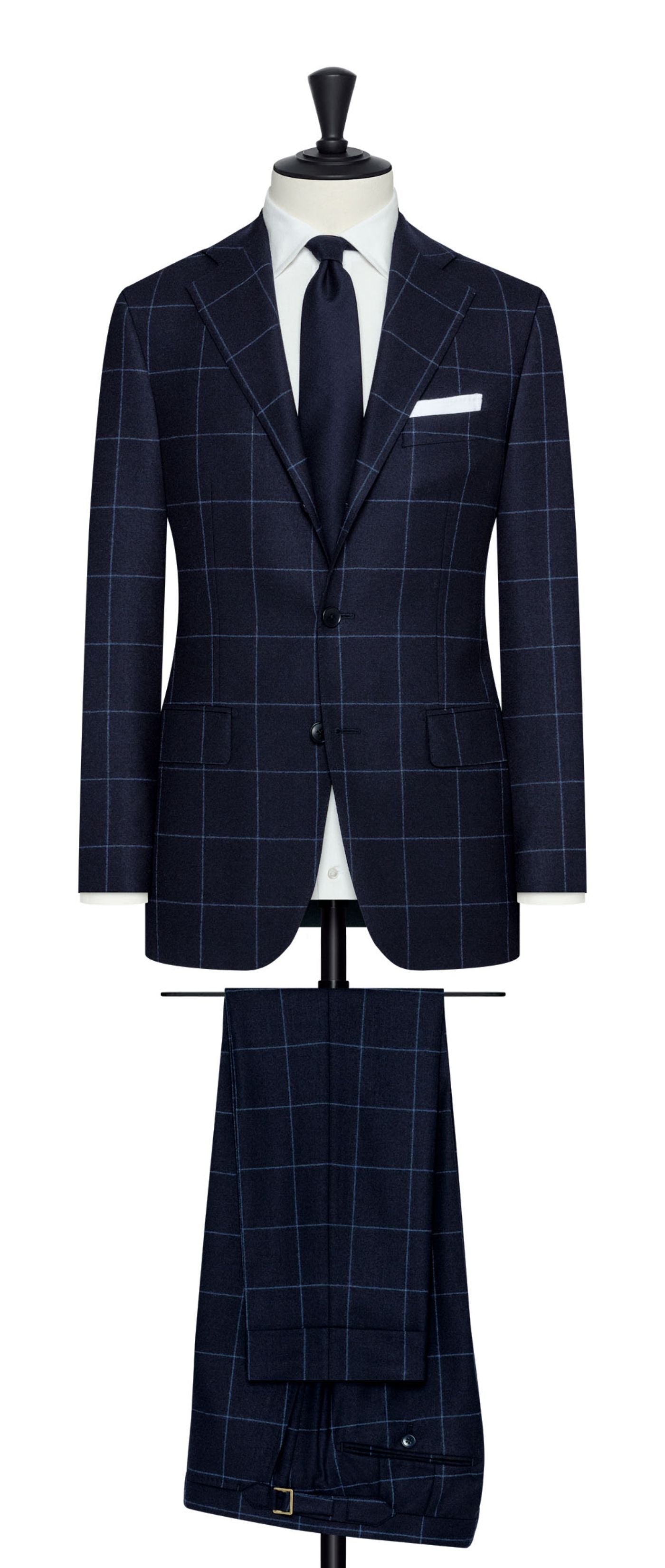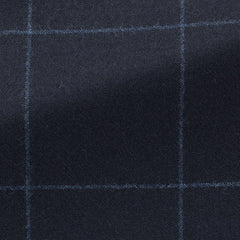 Drago Midnight Blue Natural Bi Stretch S130 Wool Flannel With Storm Blue Windowpane