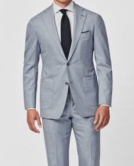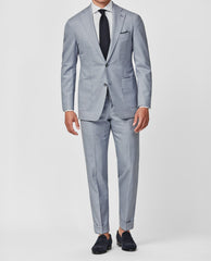 Angelico 365 Doppio Ritoto S130 Merino Wool Ice Blue with Tonal Micro Check