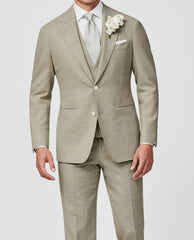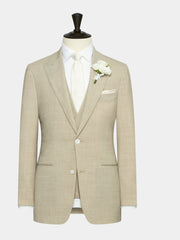A favorite in our collection, the open-weave fabric features a blend of wool, linen, and technical fibers offering breathability with stretch. Wearable for any occasion; one of our bestsellers for weddings, this sand suit with the perfect balance between formal and informal is just as suitable for the current smart casual office trend.